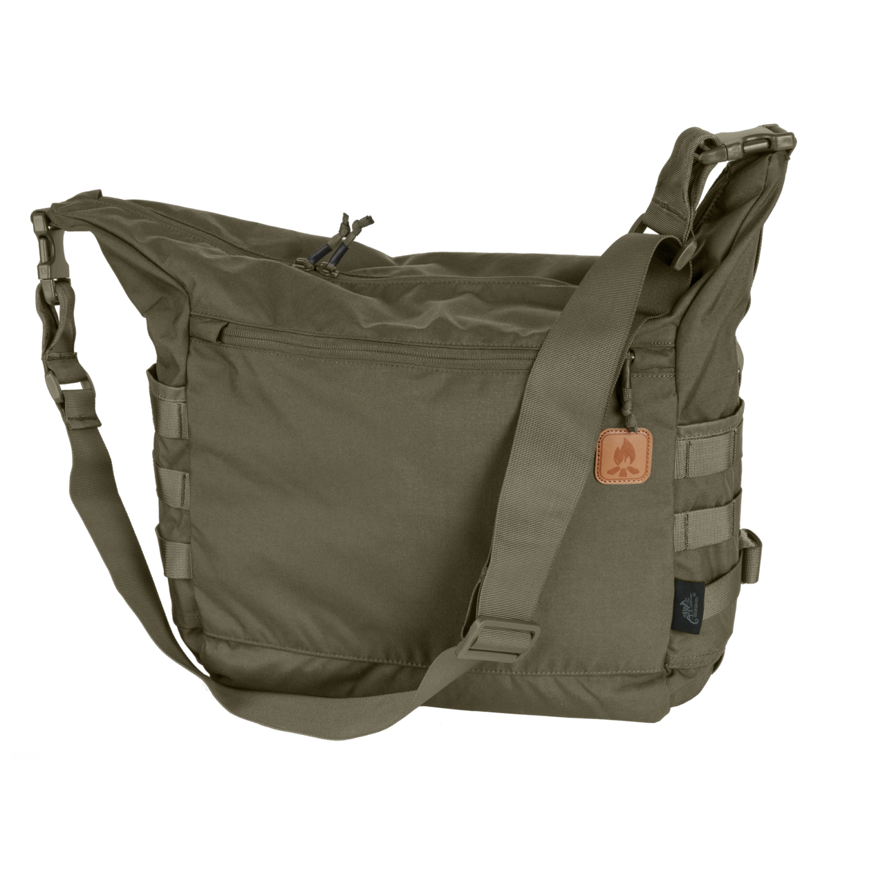 Bushcraft Satchel® is our general purpose field bag. May be used as a carry-all for one-day outing, or for every day urban activities. Extremely capacious. Main chamber comprises a zippered mesh pocket for valuable items plus two elastic drawstring pockets, e.g. water bottle holders. On the outside the bag has a large zippered pocket and two open pockets. MOLLE/PALS panels at the sides and bottom loops allow to attach additional pouches and items. Compression straps allow size adjustment.