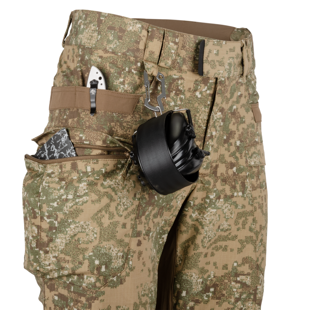 Hybrid Tactical Pants® are shooter-dedicated development of the UTP® made of two fabrics: ripstop and softshell. This innovative amalgamation resulted in an exceptionally comfortable and durable product. Fabrics used for the HTP® pants provide great freedom of movement, while reinforcements in critical areas protect from wear and tear to enhance the durability of the product. Six pockets around the hips allow the loads to be spread evenly.