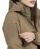 The concealed hood in the collar is easily accessible and 3-point adjustable, the large chest pockets have interior compartments for all necessary accessories, and the headphone cable outlet port is located on the right chest pocket. The sleeve pockets have Velcro straps, so the jacket can be customized with patches.