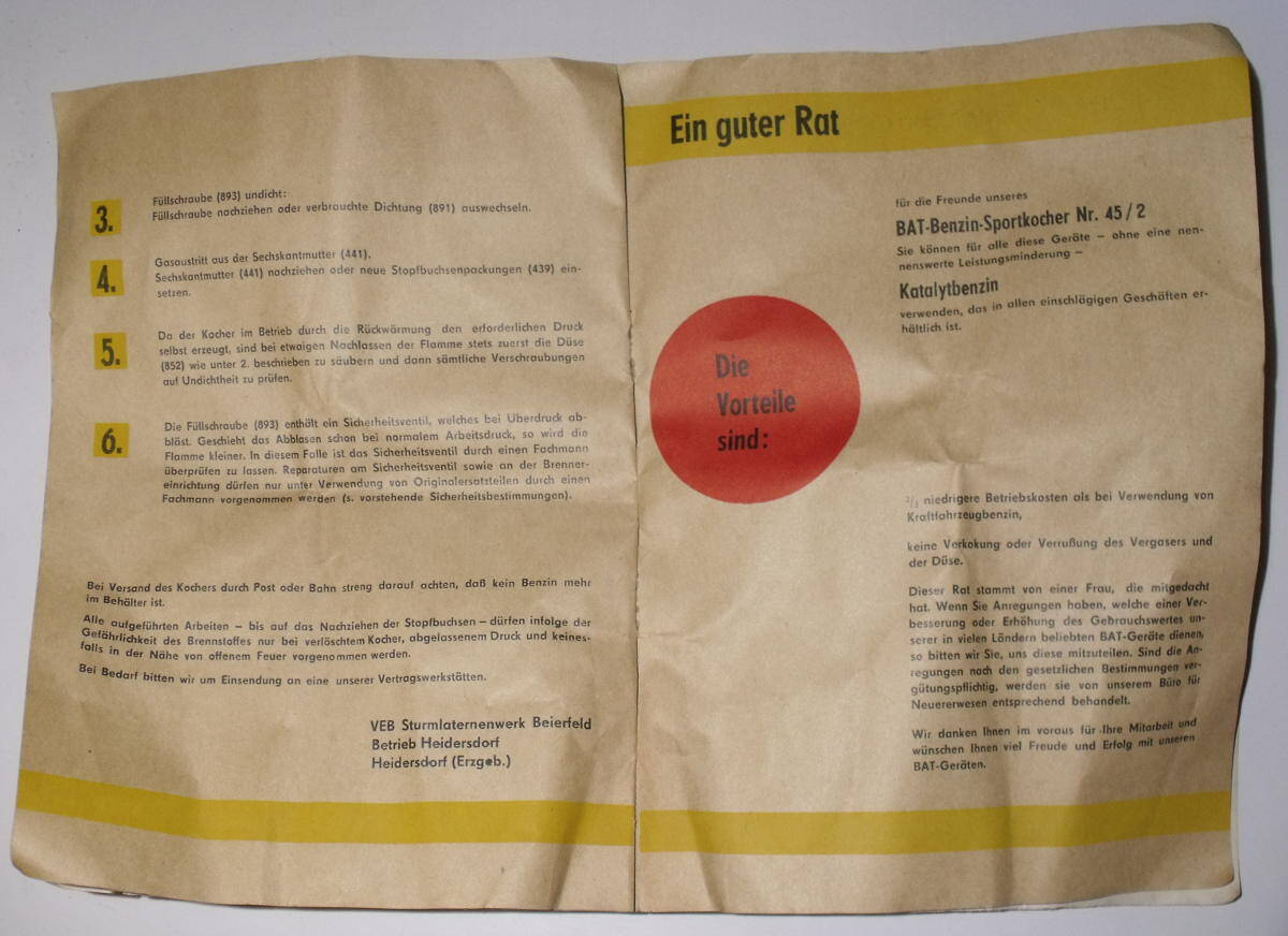 • Vintage BAT 45/2 Stove Singe Burner Made In Germany Benzin - used