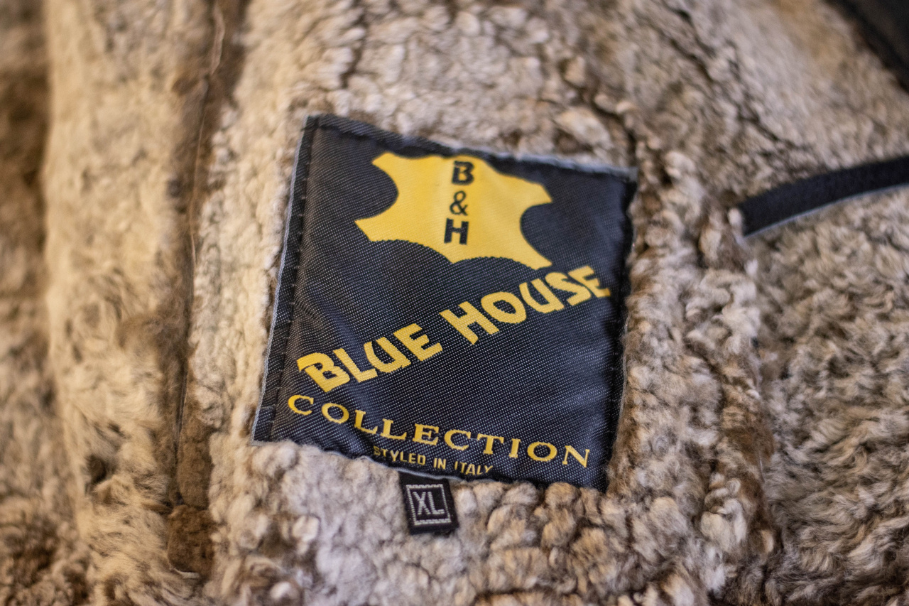- leather jacket, with fur on the inside and on the sleeves