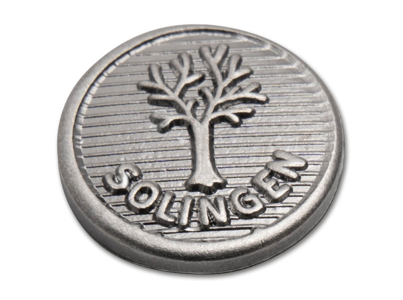 The tree connected to the name "Solingen" is the Böker tree brand, which is a chestnut tree that served as the logo for the Böker knife and tool company, located in the "City of Blades," Solingen, Germany. The brand's logo features a green tree on a silver background by a blue river, with the tree originally being a real chestnut tree that stood near the company's factory.
