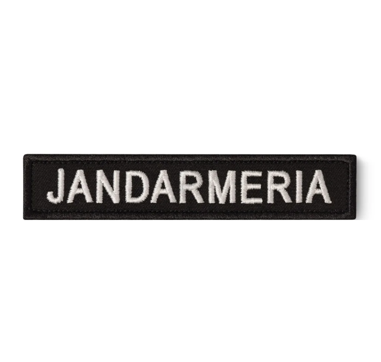 Military SurplusEmblema JANDARMERIA spate, pe suport negru si aplicare tip Velcro (cu scai) - 20x5 cm
