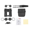 - Carrying straps, optical wipers, lens caps, carrying case with strap loop;