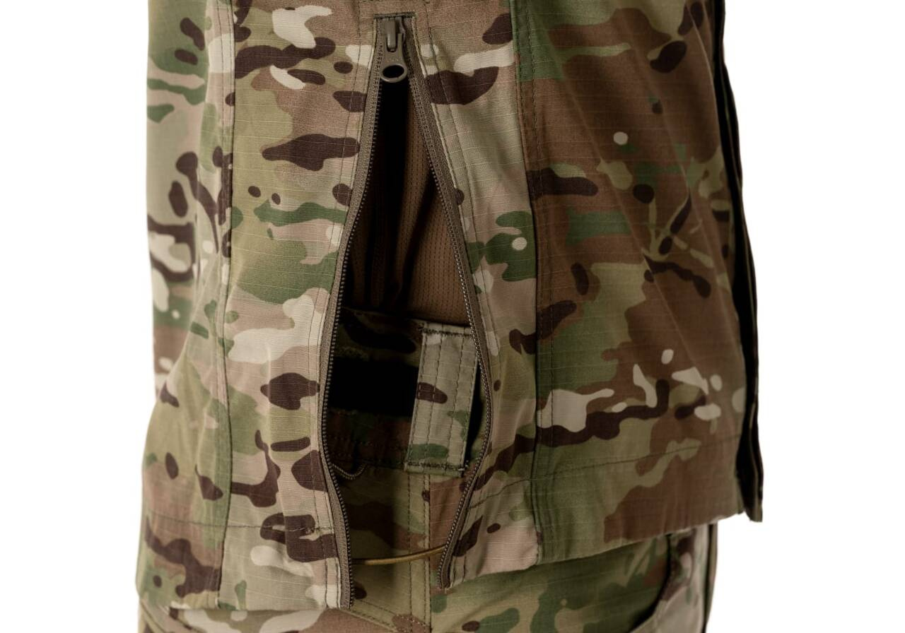 This style is designed with extended deployment and multi-role capability. The ergonomic design includes mesh venting in the front pockets and rear darts. The provision for belt-mounted side arms has been included using zippered access. Careful consideration has been given to the color mapping to insure that camouflage patterns and colors do not contrast.
