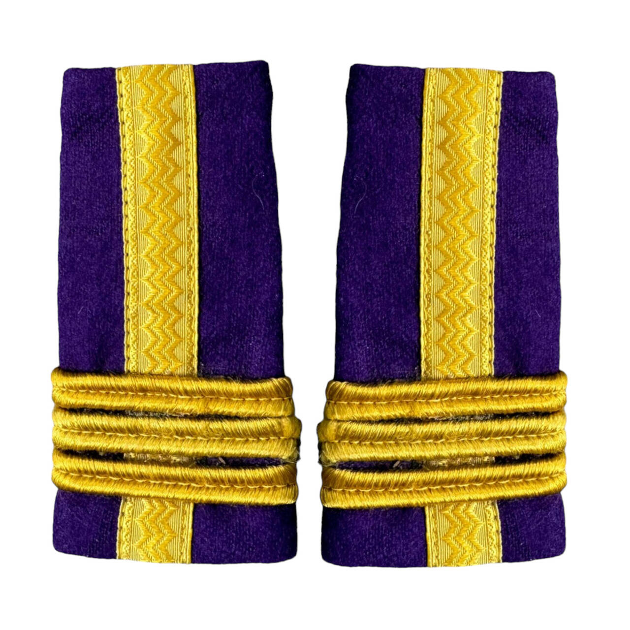 Military ranks are made in the form of a tubular sleeve with unequal ends, made on a textile backing of wool paspoal in the colour of the weapon, on which the rank markings are embroidered with metallic thread.