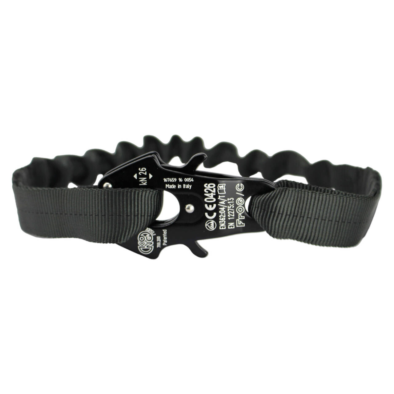 - Kong FROG carabiners with a breaking load of 26kN;