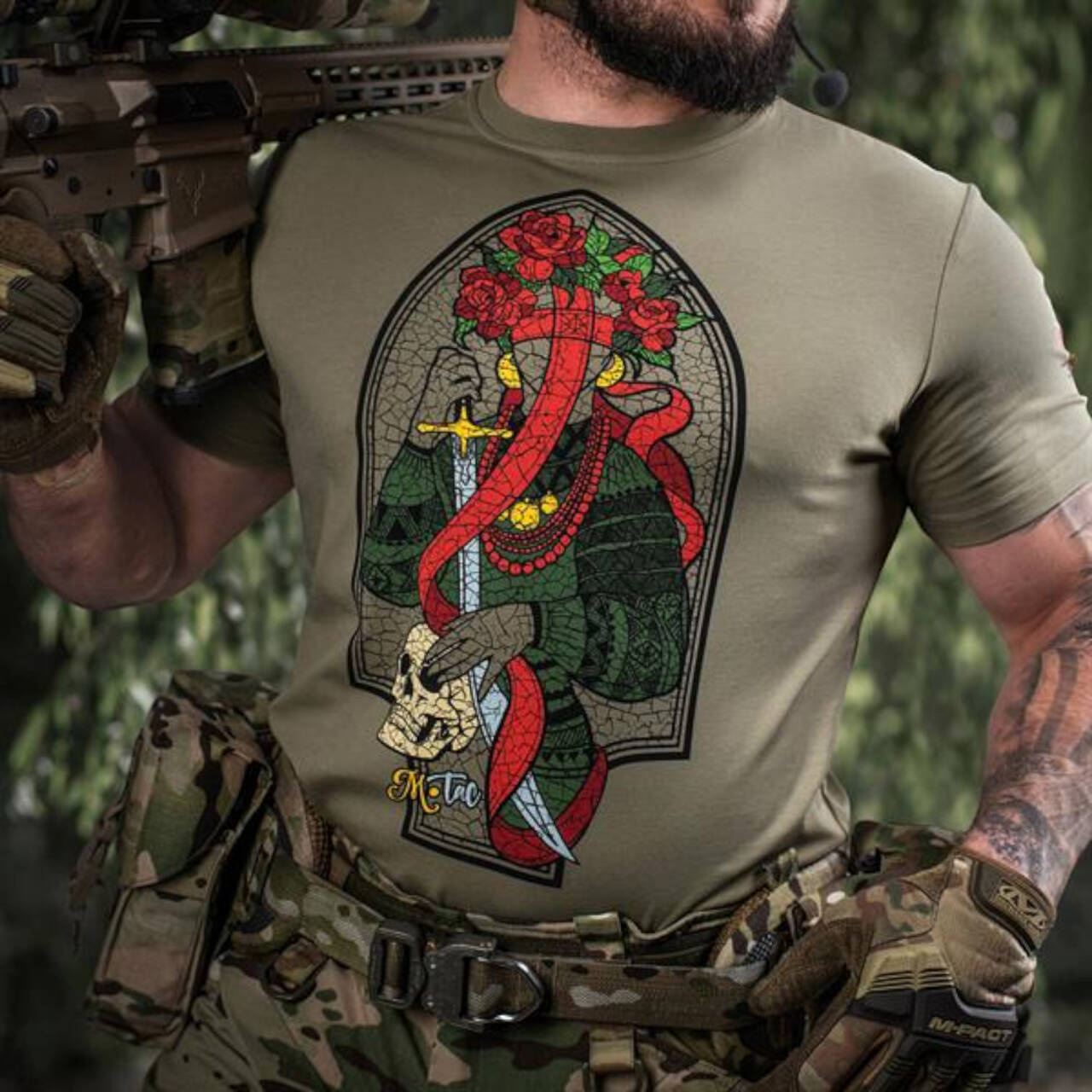 On the back of the T-shirt is the inscription "M-TAC. Terra Cosaccorum". Terra Cosaccorum (lat. "Cossack land") is the Latin name of the Ukrainian land, which was once widespread in Europe.