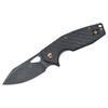 The extravagant Yaru by Jesper Voxnaes also looks good thanks to the liner lock closure system. The pocket knife has a domed blade made of M398, which can be opened with a flipper or thumbhole. The carbon handle is harmoniously accented by gold anodized screws, with a reversible tip-up clip and lanyard hole.