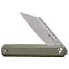 Sure to catch all eyes - the SENCUT Bronte catches the eye like a newly interpreted gentleman's knife. The massive inverted tanto blade made of 9Cr18MoV interrupts the slim lines, allowing for strong and precise cuts. The pocket knife opens with the discreet front flipper, while the liner lock ensures a reliable lock. The tart grey stonewash finish of the blade forms a harmonious contrast to the green Micarta handle scales, with a reversible tip-up clip.