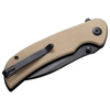 SENCUT Borzam does not promise half-measures. That claim starts with the flap and thumb opening mechanisms and ends with the reversible tip-up clip. Thanks to ball bearings, the 9Cr18MoV drop point blade opens smoothly and easily, while the liner lock ensures a reliable lock. The handle made of sand-brown, textured G10 is both a hand flatterer and weight optimizer.