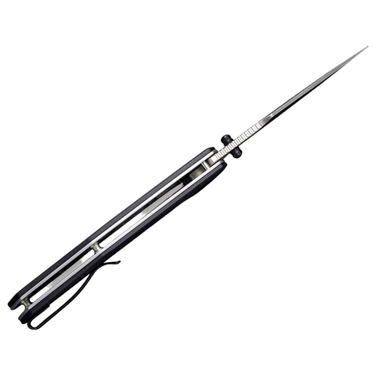 Actium = Reaction. With this simple formula, SENCUT describes the principle of interaction between the D2 sharp blade with a stonewash black finish and cutting ropes, boxes, or packaging. The pocket knife opens on bearings with a flipper or thumb pin and locks with a robust liner lock mechanism. The ergonomic G10 black handle provides firm support in all conditions. Features lanyard hole.