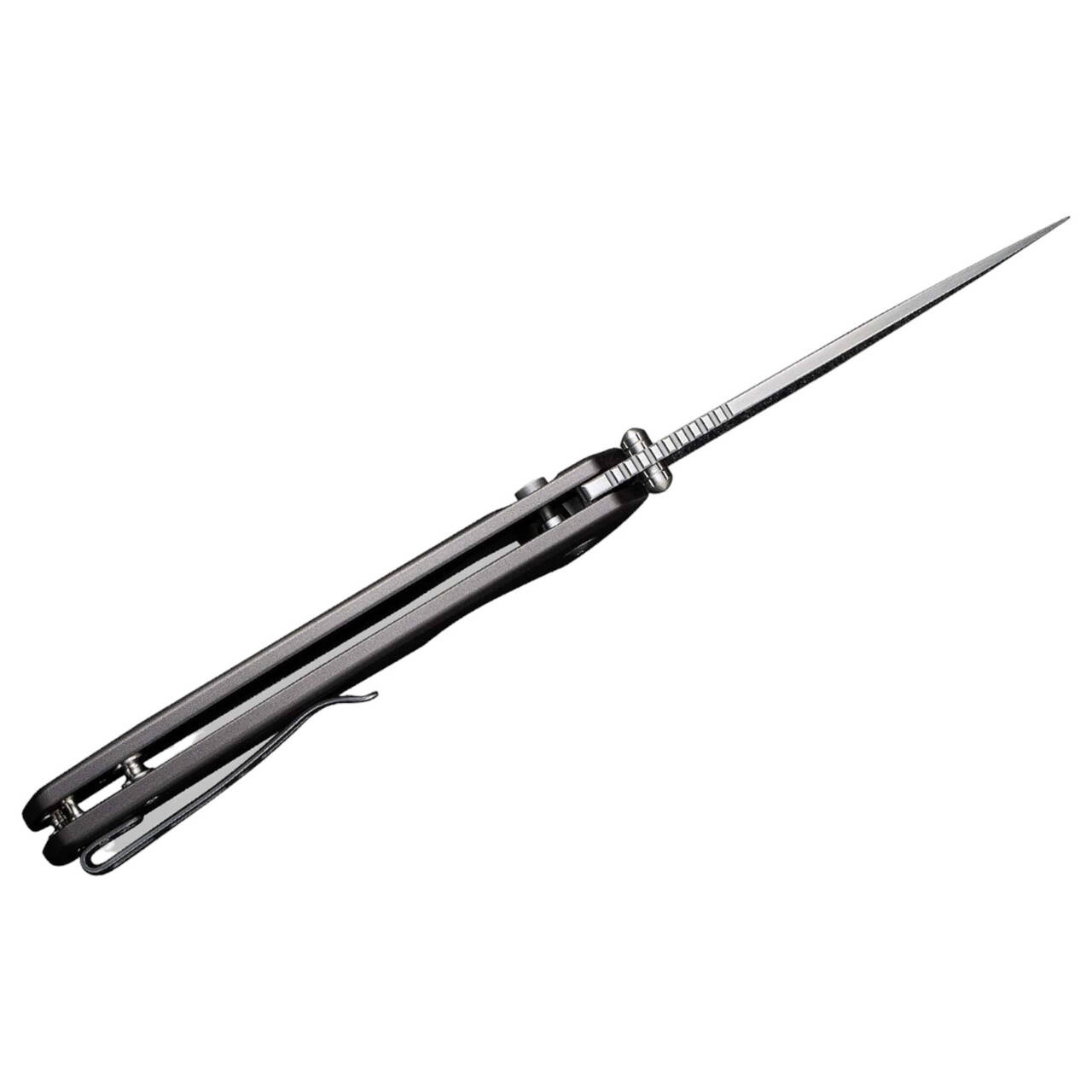 Casual meets powerful - Serene is a rugged everyday knife for demanding cutting jobs and points with a D2 drop point ball-bearing blade with a satin finish and a heavy-duty grey aluminum handle. The folder can be opened with a flipper or thumb button, while the intuitive push-button lock unlocks the blade. The convertible (tip-up) carry clamp offers flexible carrying options.
