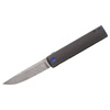 Fox Knives' CHNOPS embodies the pure form of metal cutting materials in the periodic table of knife elements. The opening of the Damascus blade after flipper actuation can be understood here as a chemical reaction that transforms the folder with the addition of the sturdy linerlock in combination with the thin titanium handle into a durable solid that separates the atomic compounds of everyday cutting work. Chemical balance is restored by the convertible clamp (tip-up/r).
