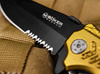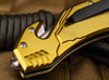 The sturdy Magnum Air Force Rescue is a reliable rescue knife that combines numerous practical functions and can save lives in an emergency. The black-coated reverse tanto blade made of 440A is equipped with a partially serrated edge and is opened with a spring-assisted flipper. A sturdy linerlock locks the blade when open. The olive gold anodised aluminium handle always lies securely in the hand and has a detailed army emblem. Supplied with a glass breaker, a belt cutter and a practical clip (tip-down/r).