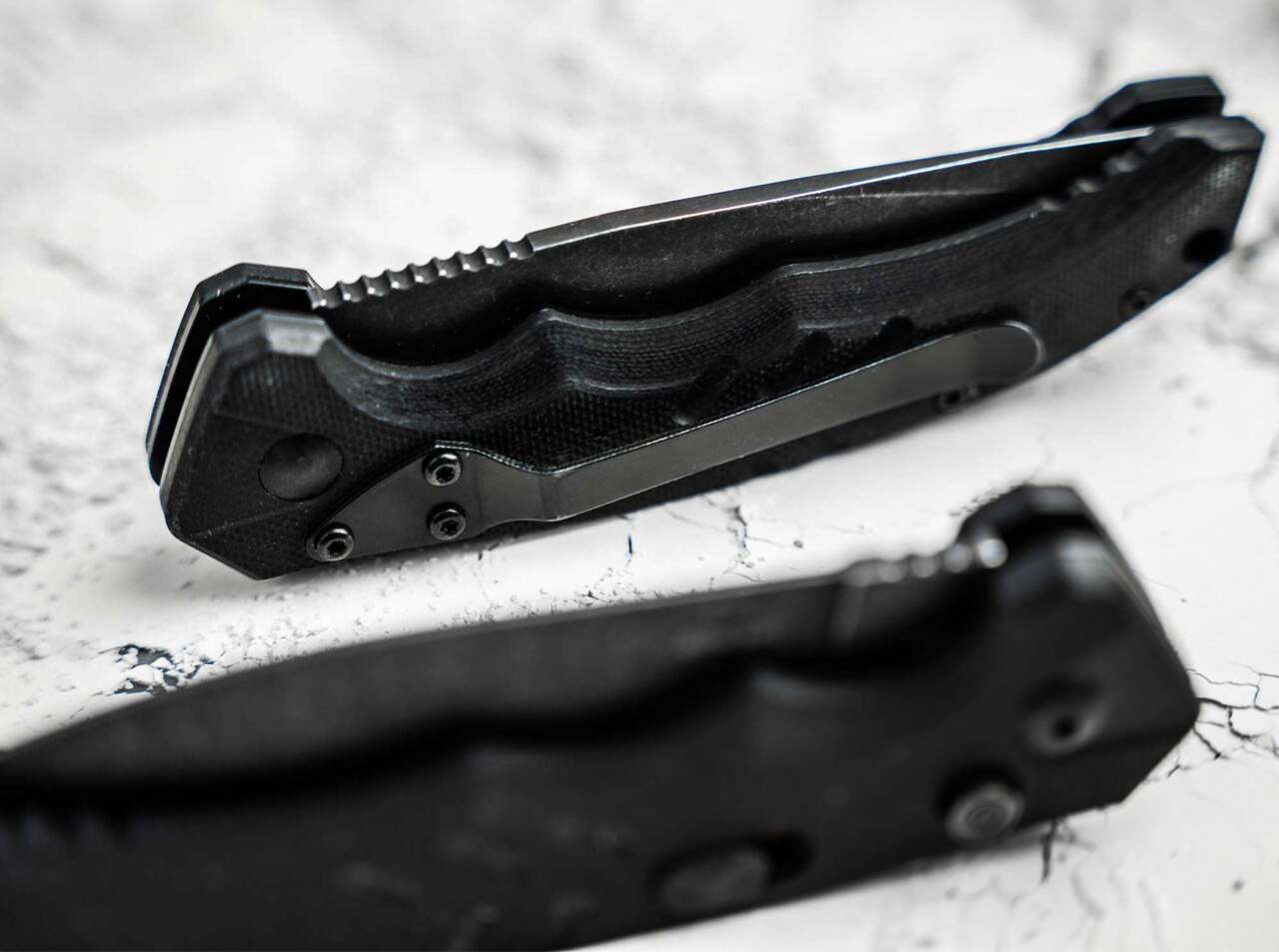 The Boker Plus Intention, designed as a tactical automatic knife, is not only convincing in action, but also handles all everyday cutting tasks effortlessly. Pressing the push button releases the D2 blade, which then opens automatically due to the tension of the spring behind it. A neatly locking sliding safety catch additionally secures the knife against accidental release. The ergonomically shaped handle is made of textured, black G10, and the jimpings in the area of the thumb ramp and the pronounced finger recess further improve the grip. The tactical appeal is underlined by the subdued black stonewash finish of the blade. Supplied with a lanyard hole and a clip (tip-down/r).