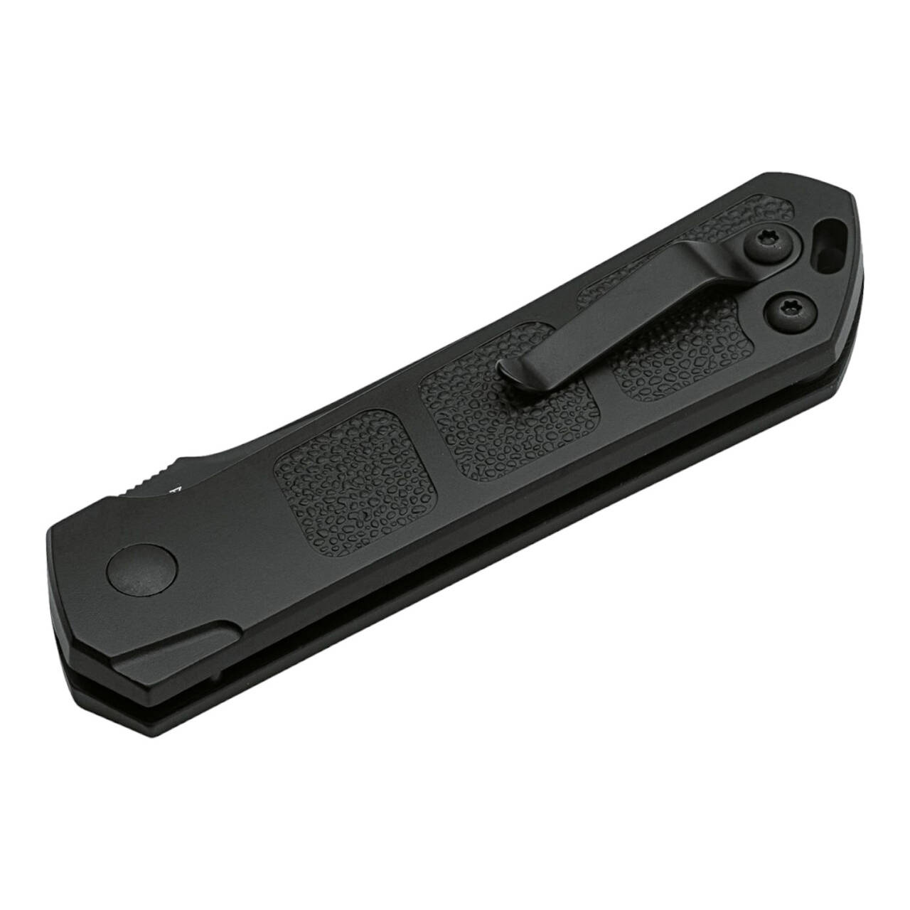 The Boker Plus Kihon Auto designed by Lucas Burnley is a robust automatic knife at an attractive price point, perfect for everyday and tactical use. For the Kihon, the American knifemaker combines Japanese style elements with tactical features. The pocketknife has a black coated blade made from AUS-8, reminiscent of a classic Japanese sword. It opens with a push button. The handle scales are black as well, made from lightweight aluminum with texture elements. With a lanyard hole, short clip (tip-up) and high-quality nylon case for storage.