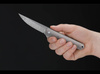 The Boker Plus Kwaiken Flipper by Lucas Burnley is probably one of the most influential designs of the 21st century. With its clean and utilitarian form, the modern pocket knife has become a true icon. The clean lines and slim design, which still houses the complete blade when closed, is absolutely unique. It is the further development of his well-known Burnley Kwaiken Classic - a cord-wrapped neo-Japanese fixed blade. The flipper ensures intuitive operation and additional safety, while the Linerlock securely locks the narrow blade made of Damascus. The Swedish powdered-metal Damasteel, which has been among the most desirable Damascus brands for many years. Not only its breath-taking visual appeal, but also its very good edge-holding and stainless properties not only make damascus steel blades into true collectibles, but also into fully capable utility knives for daily carry. The exclusive appeal is underlined by the Titanium scales, which give the knife a very special appearance. The thin construction and exclusive materials make the Kwaiken into a true crossover between Gentlemen Folder and Tactical Knife. With removable clip (tip-up).