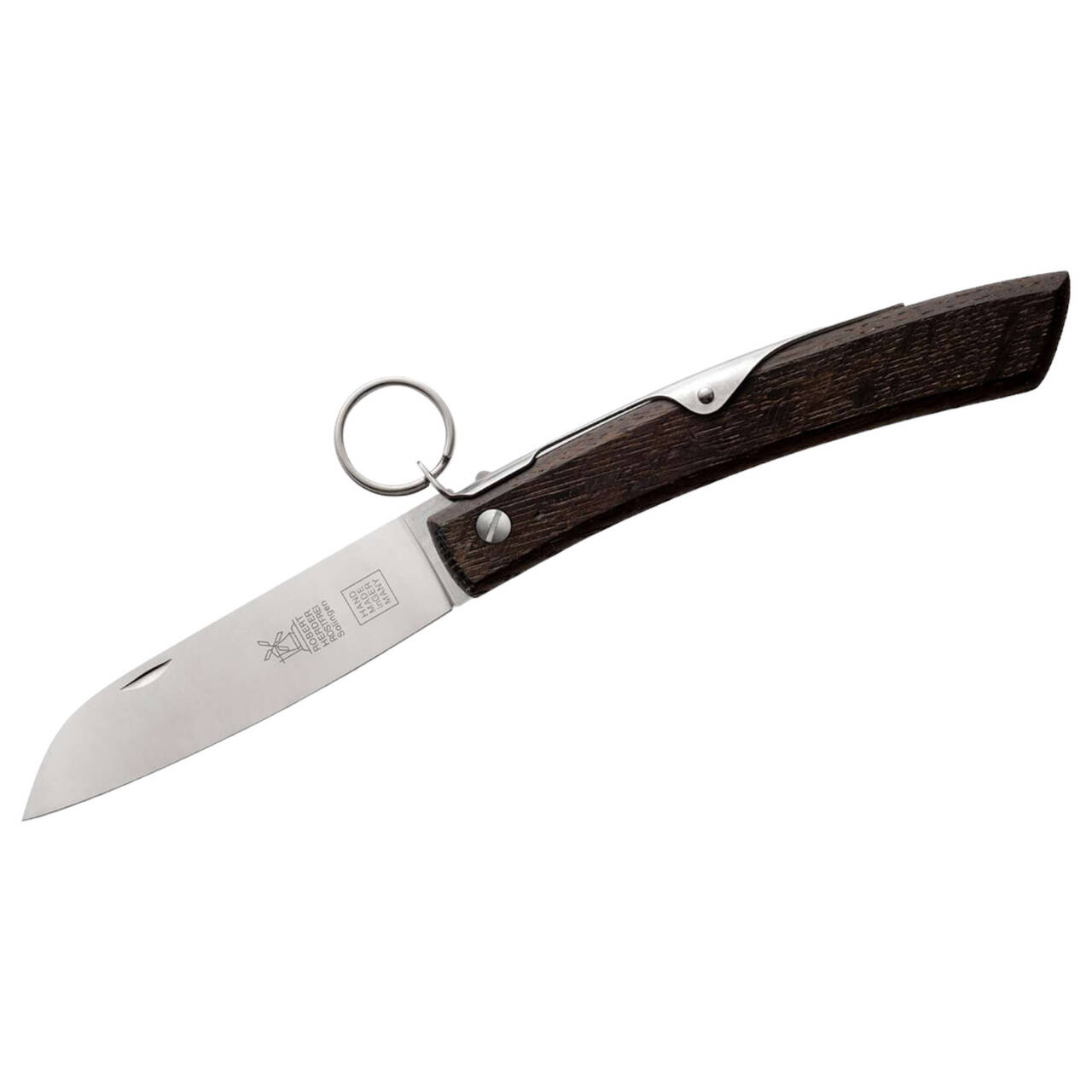 The Ibex is a robust and functional pocket knife for outdoor use. With its ergonomically designed handle made of smoked oak wood, it offers a secure grip and is comfortable to use. The blade made of high-quality 4116 steel is sharp and precise, ideal for various cutting tasks when camping or hiking. It is opened via the nail nick and unlocked via the ratchet lock by pulling the ring. The Windmühlen knife Ibex is designed for durability and reliability, which means it can withstand the tough demands of outdoor use. Thanks to its high-quality workmanship and functionality, it is a good choice for outdoor enthusiasts who are looking for a high-quality knife for their adventures.