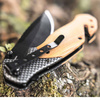 A pocket knife package that could not be more comprehensive. The Magnum Blomkvist offers three functions - a blade, glass breaker, and belt cutter. It comes with a handy nylon belt sheath with an extra pocket for a whetstone. The titanium-coated blade of stainless 440A opens with a flipper or thumb stud and is secured with a sturdy linerlock. The handle scales of Mediterranean olive wood give the knife a warm and natural look, offering an interesting contrast to the modern carbon-style bolsters. The high-end belt sheath can be worn vertically or horizontally on the belt. For more carry options and added flexibility, the versatile Blomkvist also has a deep-carry clip (tip-down).