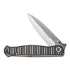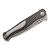 Dynamic, direct, RS71 - together with CIVIVI, Robert Saniscalchi developed this dynamic pocket knife that completely redefines symmetry. The single-edged, ball-bearing spearpoint blade made from Nitro-V opens via the thumb stud and locks via the robust liner lock. The visual highlight is the milled handle made of black and cream-white G10, which promises an excellent grip as well as a striped look. The grooved pattern is picked up discreetly and elegantly by the blade. With lanyard hole and tip-up clip (r).