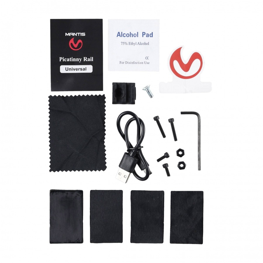 The kit includes an additional BR7 adapter with Picatinny rail, which allows the Mantis X10 Elite system to be mounted on weapons without an accessory rail. The adapter fits all types of weapons with bull-barrels (round barrels). The set includes 4 spacers of different sizes, which makes it possible to mount the adapter on rifles in calibers: 12, 16, 20, 28, as well as rifles with barrels of 15-24 mm outer diameter.
