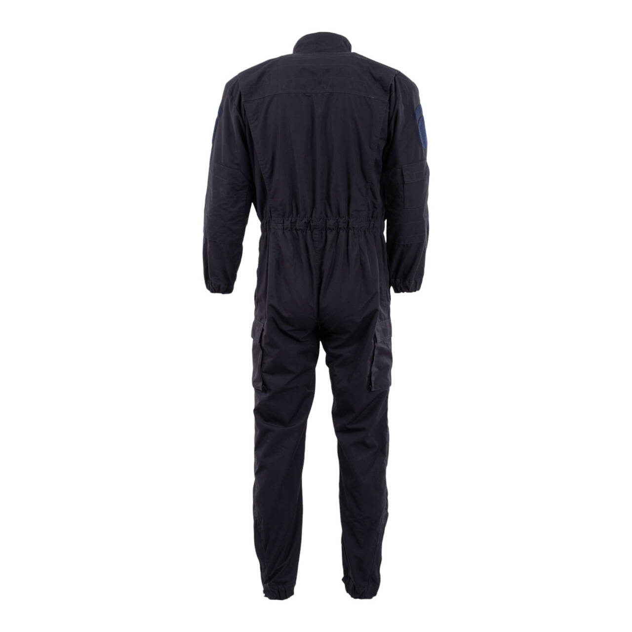 This tactical jumpsuit is made from navy blue ripstop fabric (50% cotton, 50% nylon, 220 g/m²), known for its durability and resistance to tearing and abrasion. The material is lightweight, breathable, and maintains its dimensional stability and color intensity even after prolonged use and multiple washes.