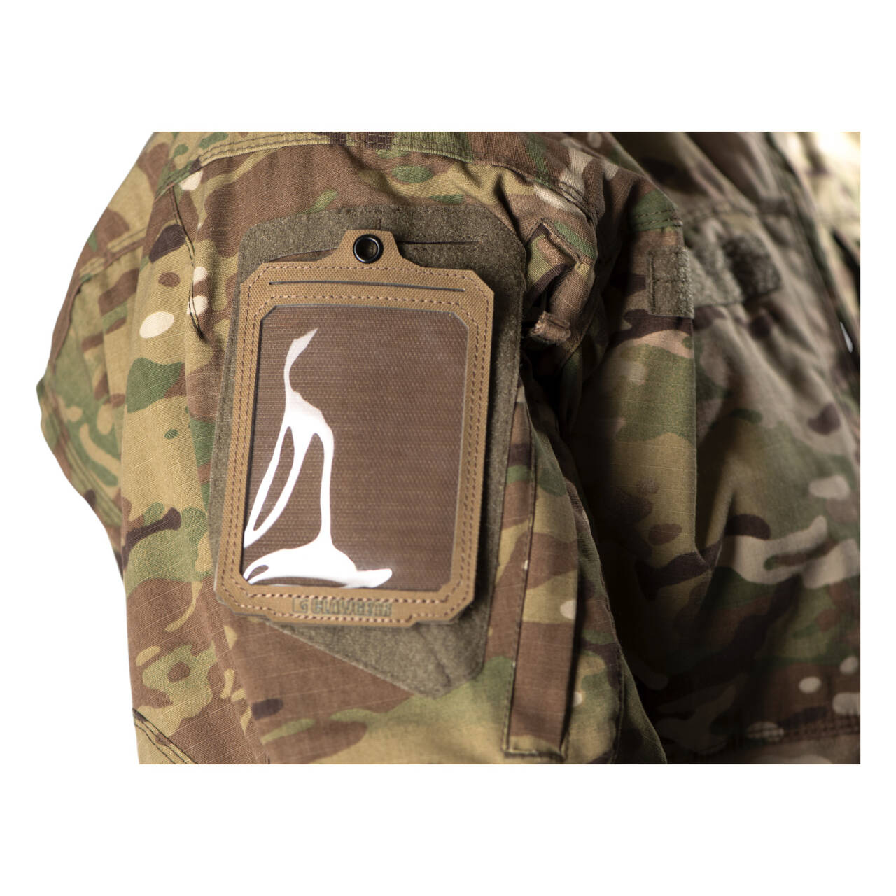The Multi-Purpose ID Holder is an ID card sleeve that can be attached to any Velcro surface or an included neck strap adapter.