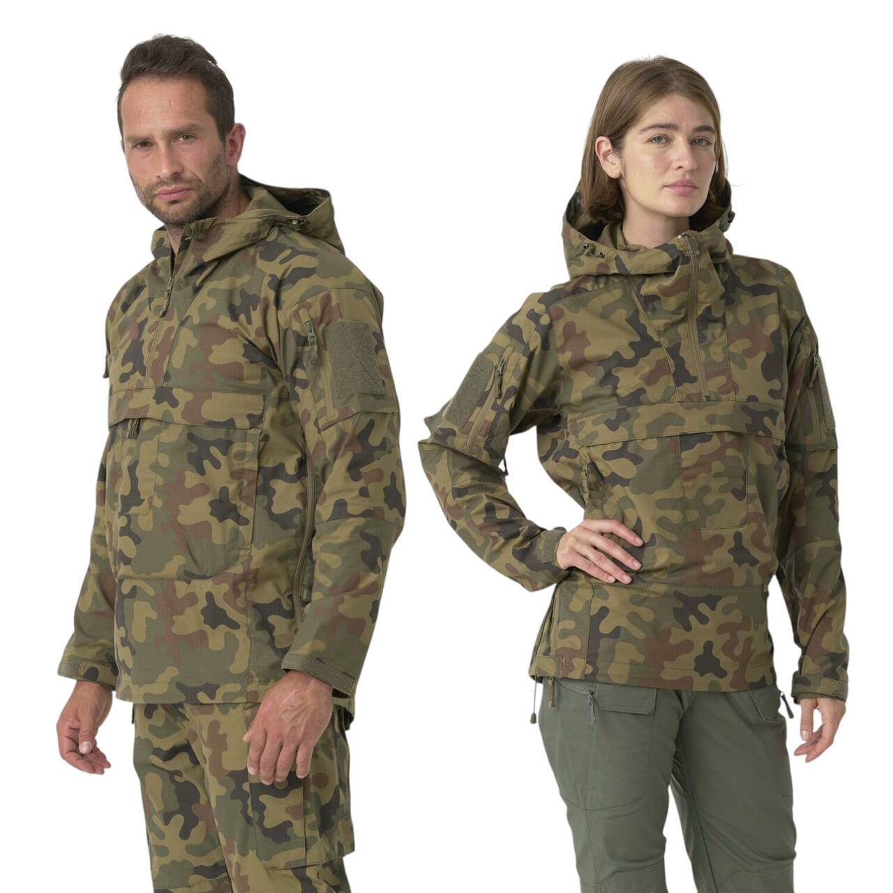 Since the needs of civilians and soldiers are often different, we adapted our jacket for military operations. The Tracer Anorak is made entirely of one material, without softshell on the back. This way, the entire jacket is covered in the same camouflage, improving concealability. The lack of softshell is compensated for by side zippers that open fully, allowing for adjustable ventilation according to individual needs and making the jacket easier to wear. Thus, the Anorak Tracer jacket can serve as a replacement for a blouse or combat uniform. The wide, oversized fit means that the jacket can also be worn over a fleece or light jacket (e.g. Wolfhound Hoodie), allowing the necessary camouflage to be worn regardless of the color of the clothing underneath.
