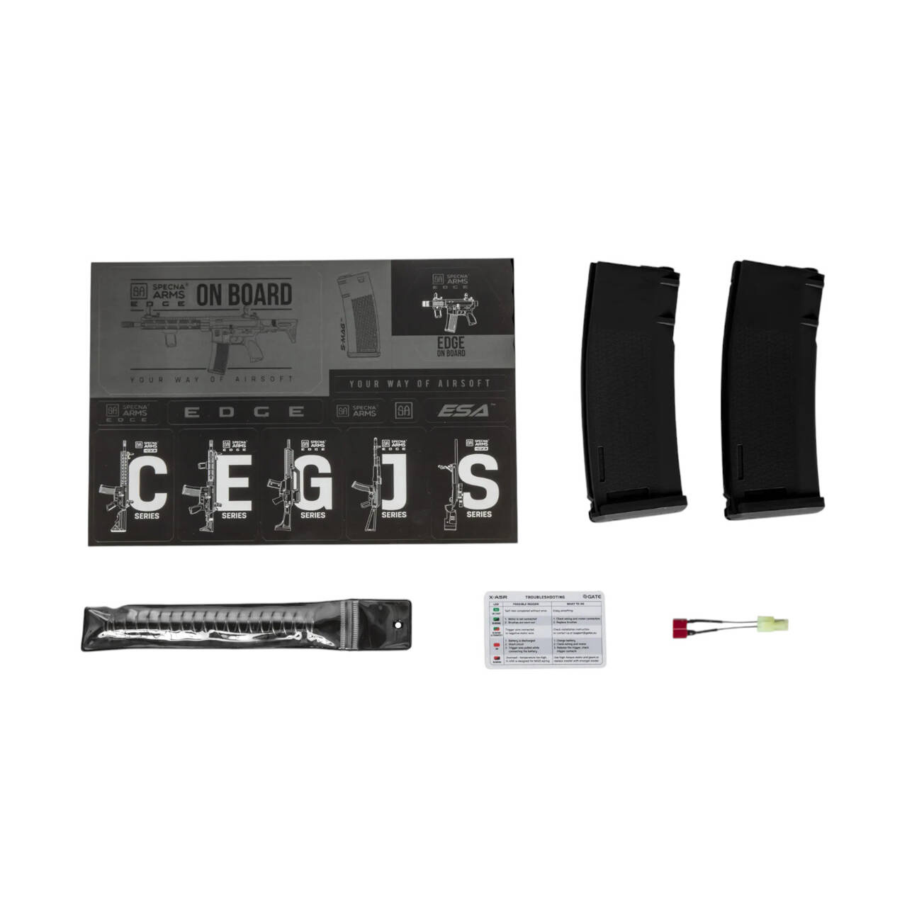 The replica box includes two S-MAG mid-cap magazines with a capacity of 125 rounds each. The S-MAG is an exclusive polymer magazine designed by Specna Arms. What catches the eye is the distinctive texture composed of Specna Arms logos. The S-mag ensures smooth bullet feeding, even at high ROF.