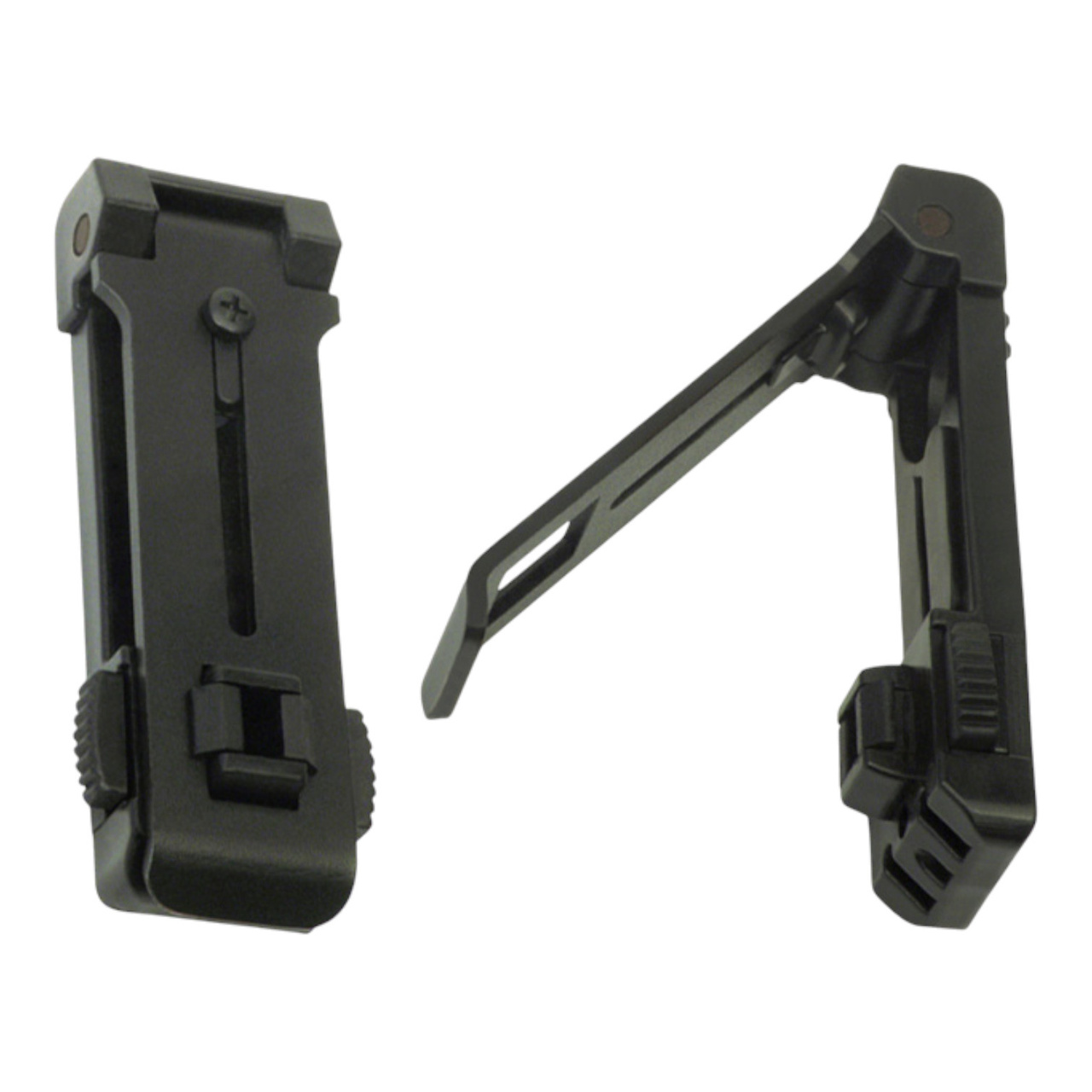 This type of bracket uses the UBC-02 quick-coupling flat clamp design, which allows it to be quickly inserted on a belt with one hand and without the need to undo the belt. Compared to the UBC-01 clamp, the distance between the belt and the magazine is smaller with this type of clamp. The magazine can be rotated relative to the belt through a full 360 degree circle with 16 locking positions. It can also be attached to the M.O.L.L.E. support system.