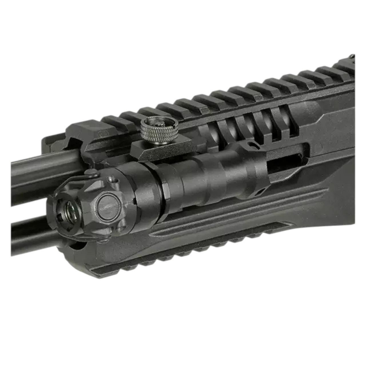 The KIJI K1 Tactical Tactical Flashlight is a tactical flashlight with a Picatinny rail adapter. The manufacturer is the well-known and respected company WADSN, known for the quality of its products. The flashlight body is made entirely of lightweight and durable aluminum.