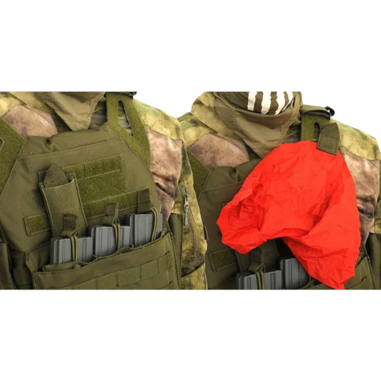 - Rolul acestui pouch este de a arata celorlalti participanti, ca jucatorul a fost lovit. Este denumita pe terenul de airsoft si "carpa mortului".