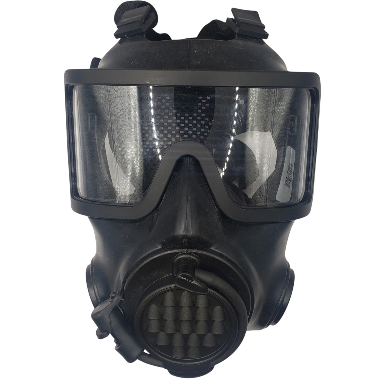 The mask is made of vulcanized bromobutyl rubber or polyisobutylene. It offers maximum protection against TIC (toxic industrial toxicants) and CWA (chemical warfare agents). Visibility is provided by a panoramic polycarbonate visor, resistant to scratches, chemical stains and splashes of solids.