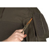 The circumference of the sleeves, both at the double-layered elbows and at the cuffs, can be precisely adjusted using Velcro closures. Inserting shoulder pads into the inner compartments helps distribute the weight of shoulder straps. The pocket configuration and seam placement were specifically designed for tactical needs and for wear under ballistic or stab-resistant vests.