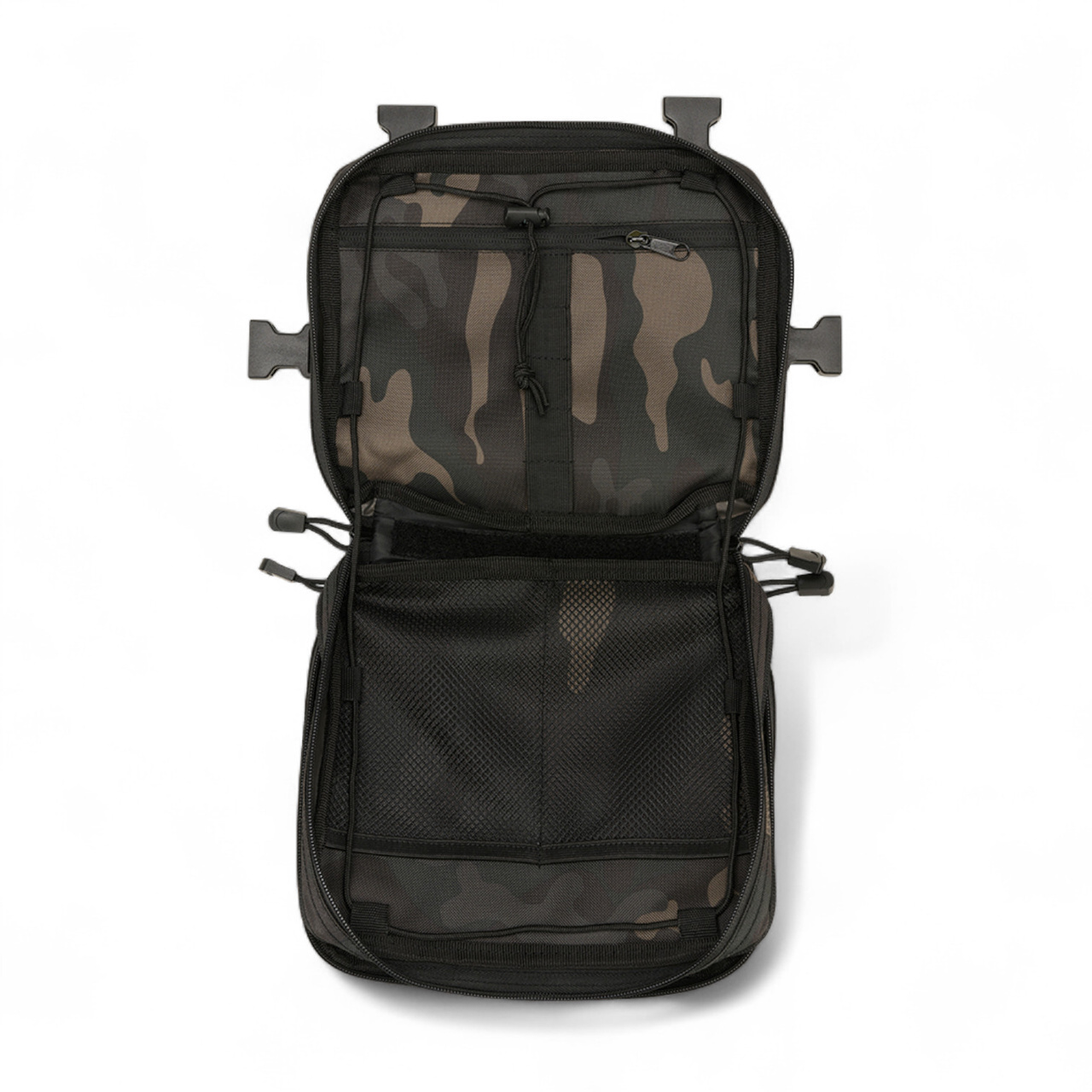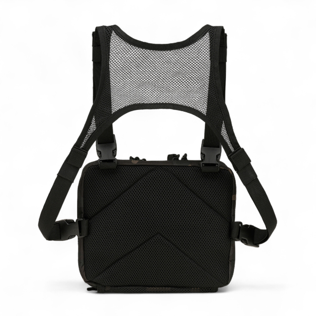 Oversized admin pouch style chest bag ideal for work, recreation or sports. Made of rugged 600DEN polyester 600DEN material, it offers efficient organization and comfortable wear thanks to lightweight shoulder straps with mesh inserts and 4 quick-release buckles.