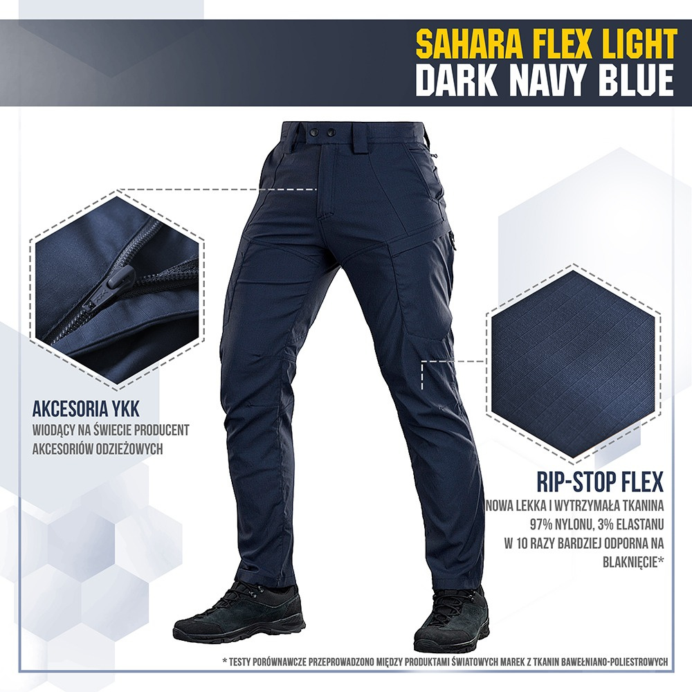 M-TAC SAHARA FLEX LITE PANTS are the ideal choice for the warm season, combining the functionality of tactical pants with a modern design, making them suitable for everyday use. The innovative Sahara Flex Lite fabric, made of 93% nylon and 7% elastane, offers excellent ventilation and elasticity, allowing for free movement, while also being resistant to abrasion and fading in the sun. The Flex Rip-Stop fabric is tear-resistant, does not retain moisture and dries quickly, remaining comfortable even on hot days.