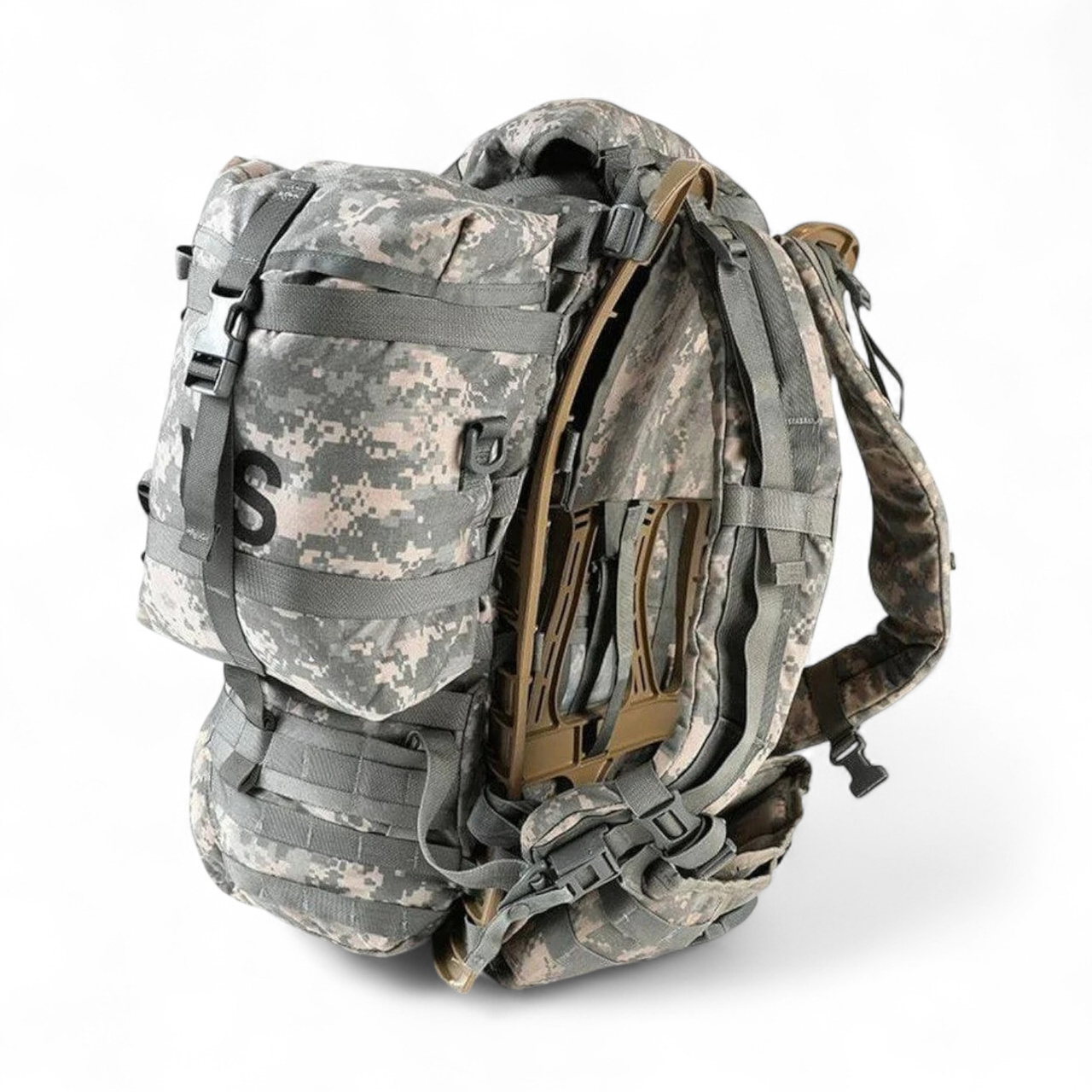 The US Army's MOLLE II backpack represents the new generation of the ALICE system, designed as a lighter and more comfortable backpack for long-term missions. Today, this large ACU backpack is ideal for any outdoor adventure, bushcraft or survival situation. Its lightweight, flexible, durable and adjustable frame has proven in the field to withstand intense military use.