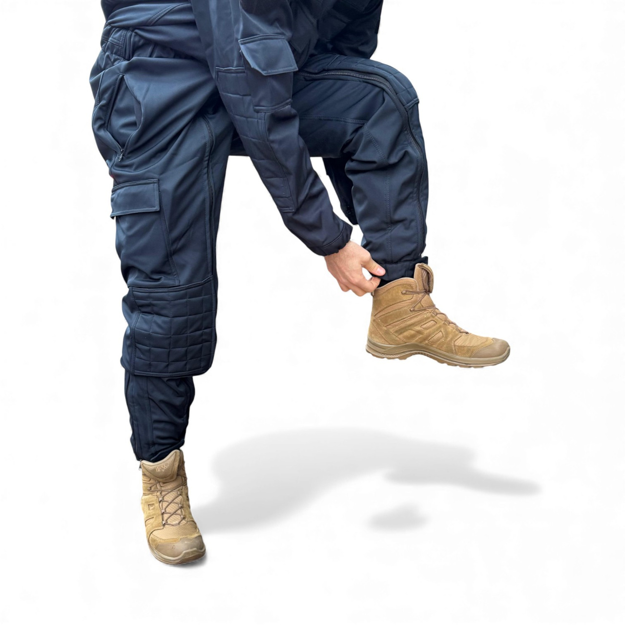 This tactical winter suit is specially designed for missions in difficult conditions, offering thermal protection, durability, and comfort. Made from navy blue softshell fabric (50% cotton, 50% nylon – 220 g/m²), the material ensures increased durability, tear and abrasion resistance, as well as maintaining stability and color even after intense use and multiple washes.