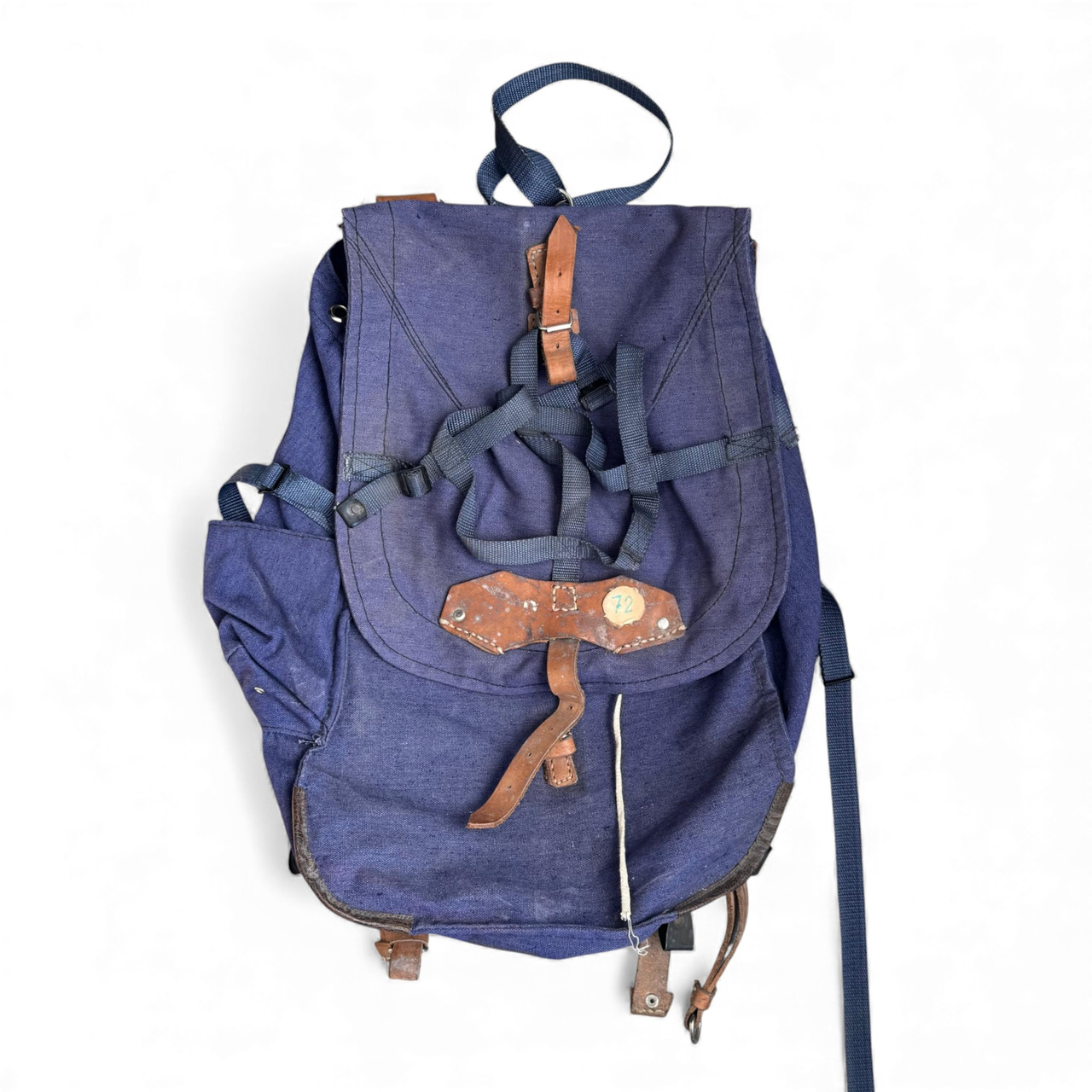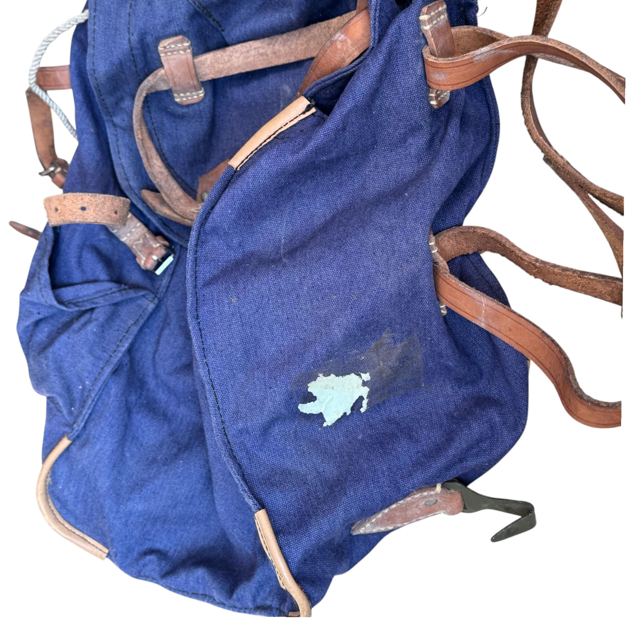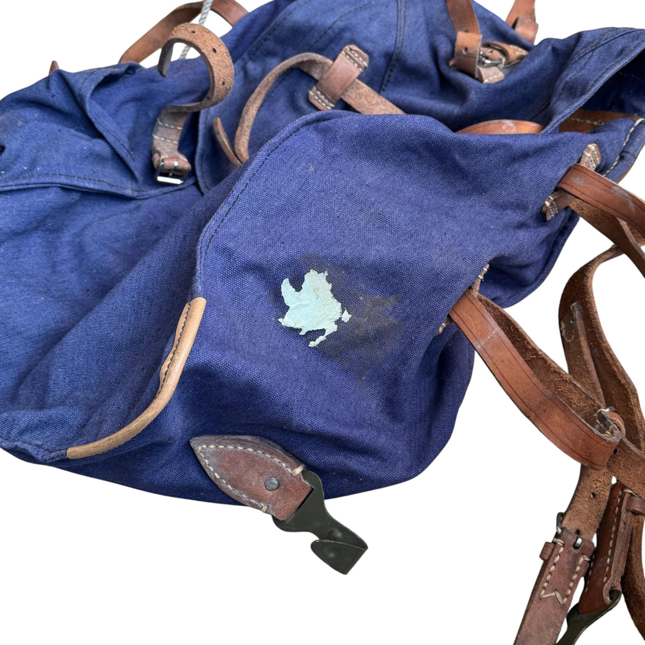Military Surplus Blue military lunch bag with leather straps, post-WWII, Romanian Army Surplus - Like New