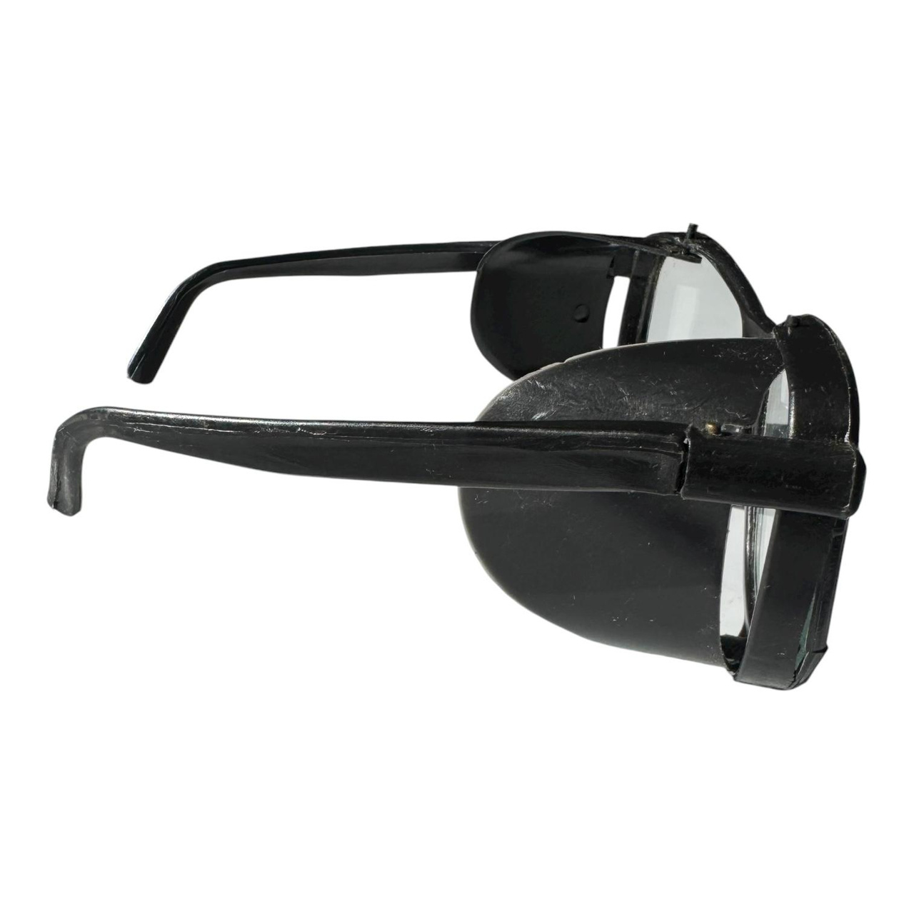 These retro glasses come from the Romanian Army military surplus and provide effective protection against peripheral light. The transparent plastic lenses and the classic black frame, complemented by detachable side shields, ensure comfort and safety in various environments.