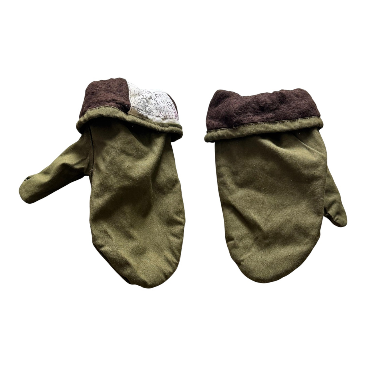 • Insulated Protective Mittens Made of Tent Canvas Material, 2-Finger Design - Romanian Army Military Surplus - OD Green - Like New