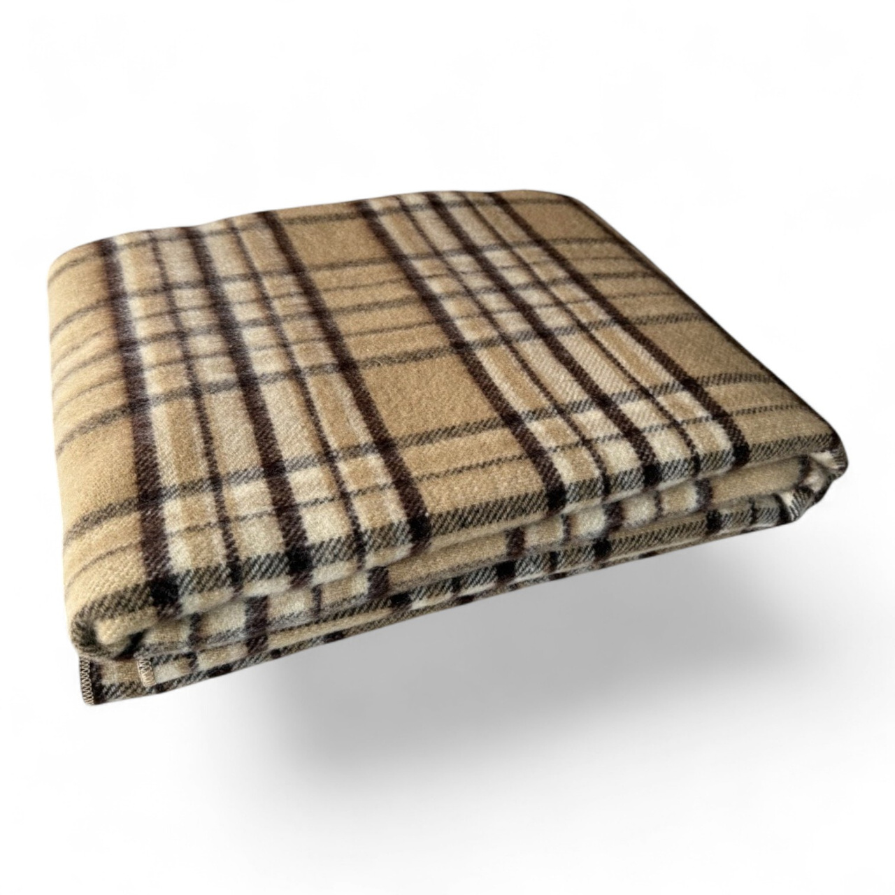 Merino Wool Blanket with Premium Box and Overlocked Edge - Model Autumn - Classic - 150x200 cm - Brown/Beige Checkered