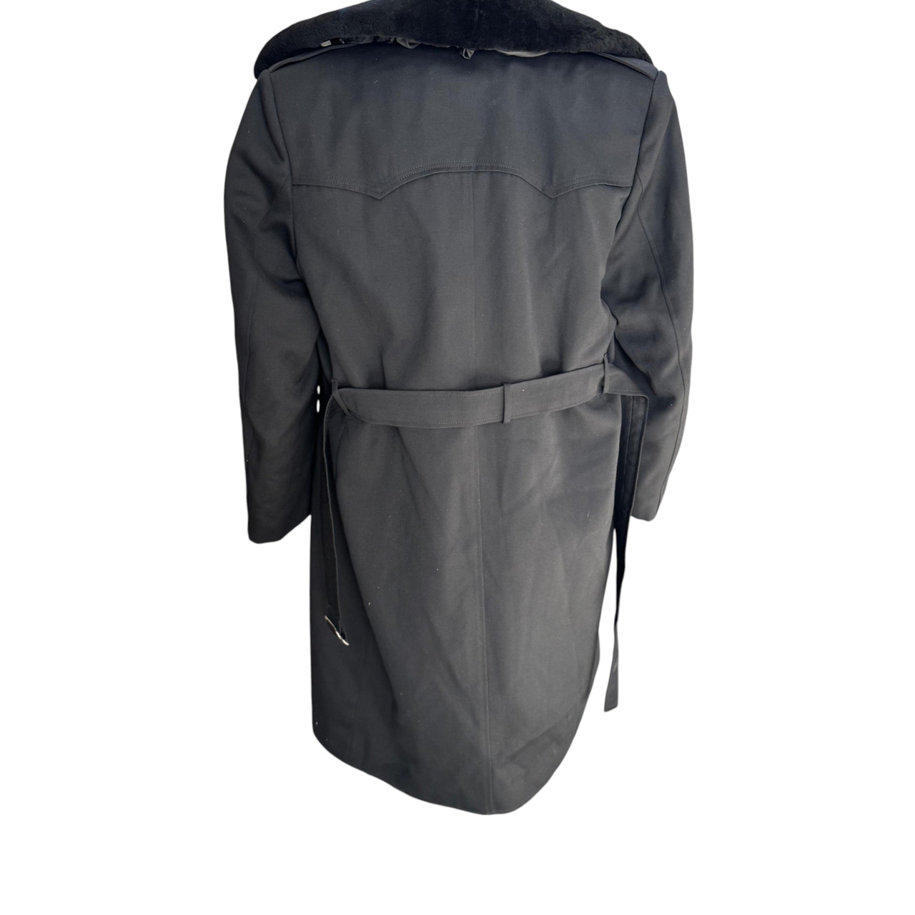 OFFICER LONG WOOL COAT - VINTAGE, 1980s - BULGARIAN ARMY MILITARY SURPLUS - BLACK - IN GOOD CONDITION