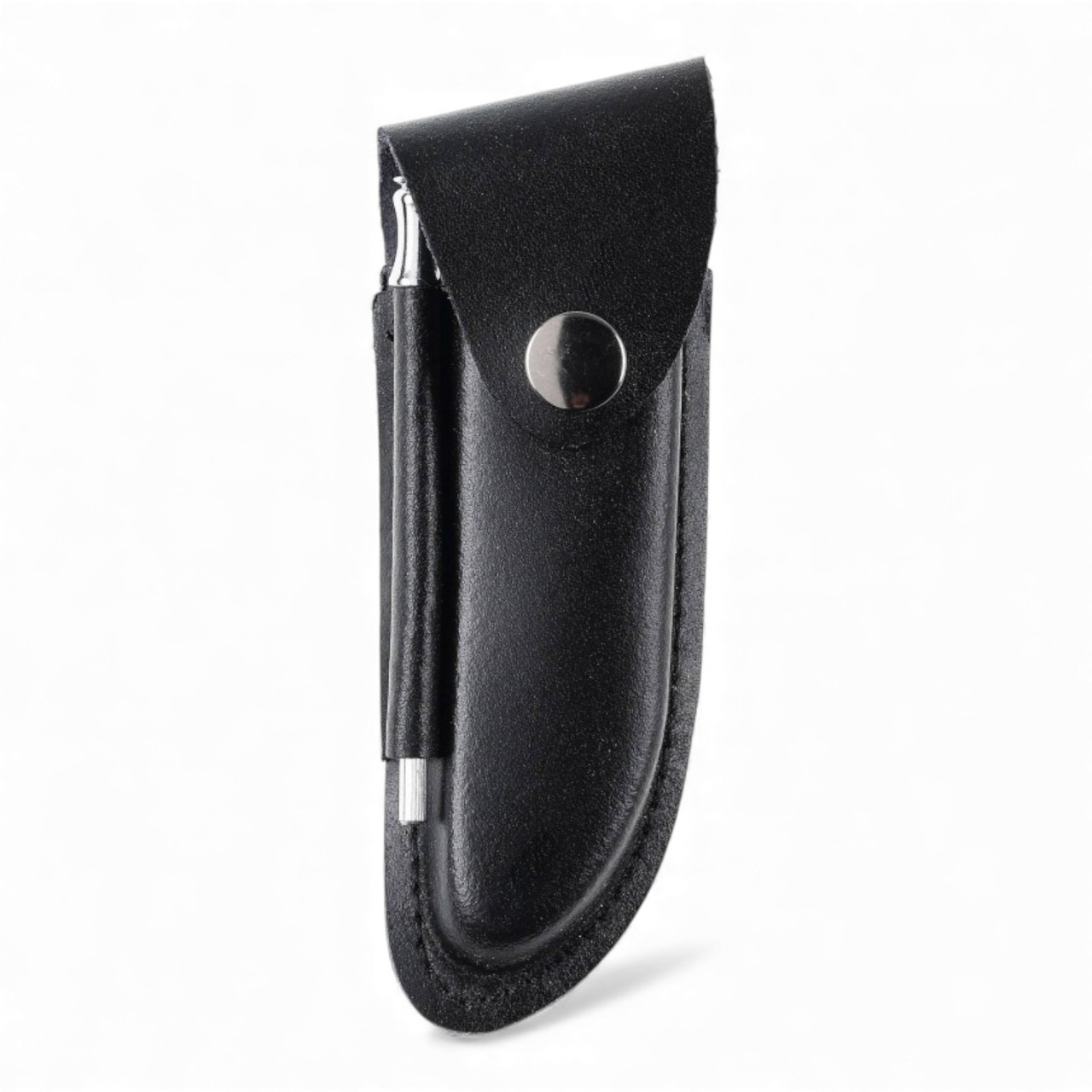 • A leather sheath for everyday carry with a hidden miniature sharpening stone