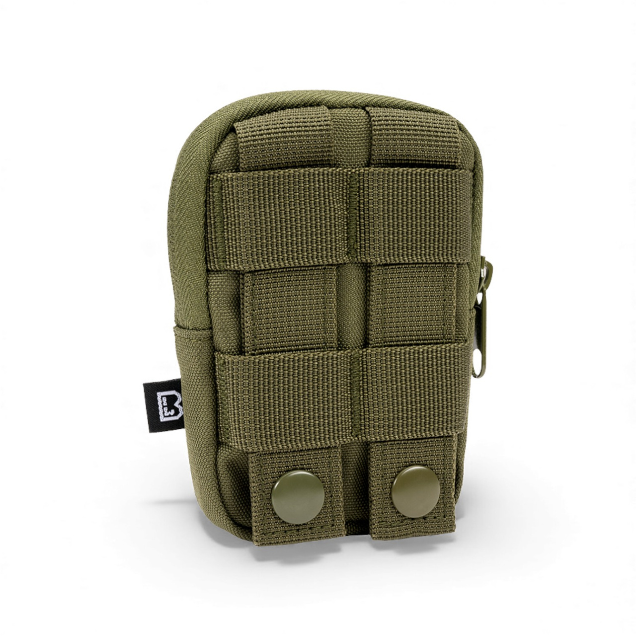 A key pouch with an interior elastic strap and an included carabiner for organizing your keys. It features a main zipper, flag label, a small exterior zip pocket, and a MOLLE system with PALS loops for attaching it to your gear.