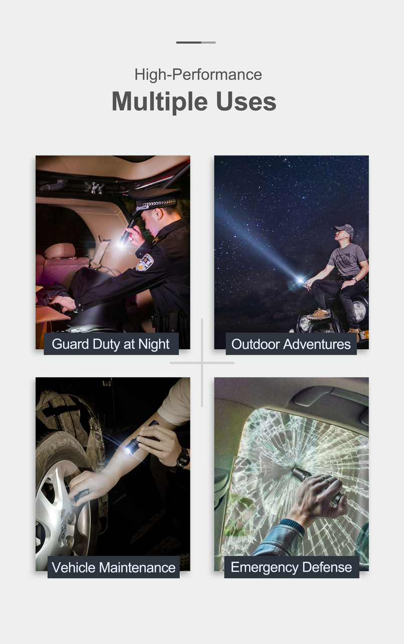 Its aerospace-grade 6061-T6 aluminum construction, combined with Type III hard anodizing, ensures outstanding durability and high wear resistance. The flashlight is impact-resistant up to 2 meters and fully protected against water, with an IPX7 rating.