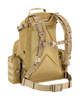 The backpack features a main large compartment and a medium one with hidden pockets to store documents, maps, etc. It has a carry and evacuation handle on its top, a molded back, fastex buckles and shoulder adjustable straps with D-rings.