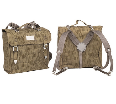 East German (NVA) military issue Stricheldruckmuster or Ein Strich/Kein Strich, AKA "Rain" camo Combat pack issued to the East German army from 1968 -1991. Has D-hooks for attachment to Y-Straps. Measures approx. 12"x11"x5". Lightly used condition.