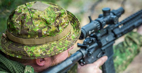 Pălărie militară cu design caracteristic, cu boruri înguste și reglabile, în stil britanic/australian. Circumferința este reglabilă pentru a se adapta la mărimea capului. Orificiile de aerisire tradiționale din metal au fost înlocuite cu tuneluri ascunse din plasă (în părțile laterale și în partea superioară), îmbunătățind circulația aerului. O bandă de transpirație sporește confortul și previne acumularea de transpirație pe frunte. Concepută pentru operațiuni preponderent forestiere. Asigură un camuflaj eficient al capului.
